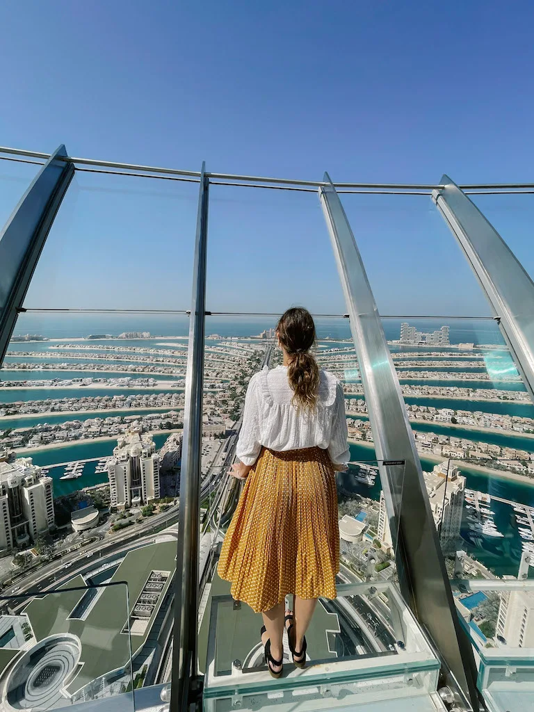 Aflată la etajul 52 al Palm Tower, terasa de observare oferă o panoramă de 360° asupra faimoasei Palm Jumeirah, a apelor turcoaz ale Golfului Persic și a impresionantului skyline al Dubaiului. Este locul perfect pentru a contempla forma inconfundabilă de palmier a insulei, vizibilă în toată splendoarea ei de la această înălțime. Înainte de a ajunge pe platforma de observație, poți explora o expoziție